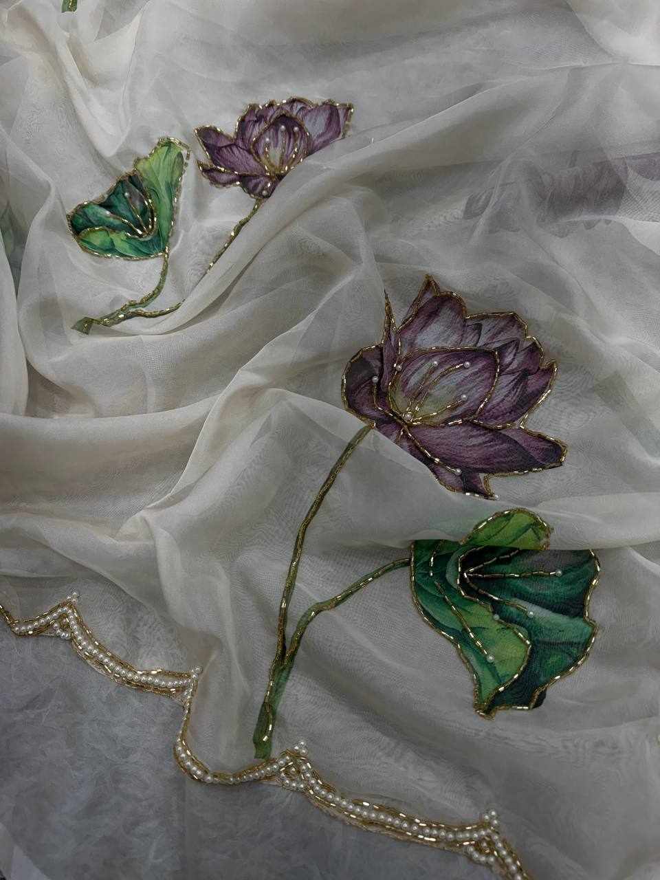 | Name : | NC 5386 Soft Organza White Beautiful floral print Saree |