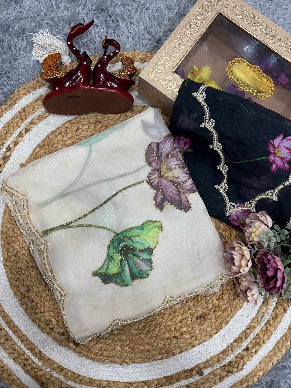 NC 5386 Soft Organza White Beautiful floral print Saree