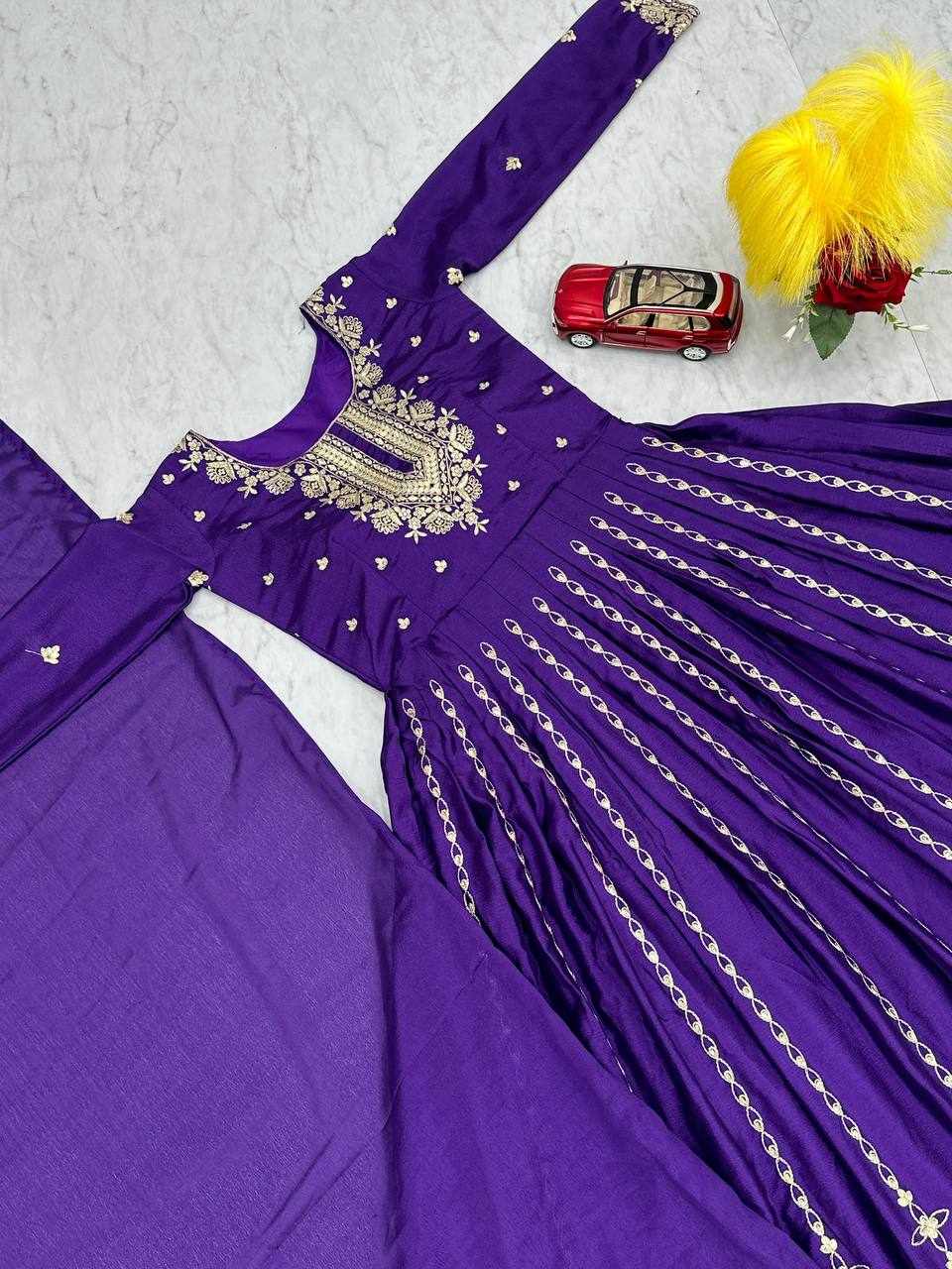 Pc 435 Violet Chinon Embroidery Sequence Gown