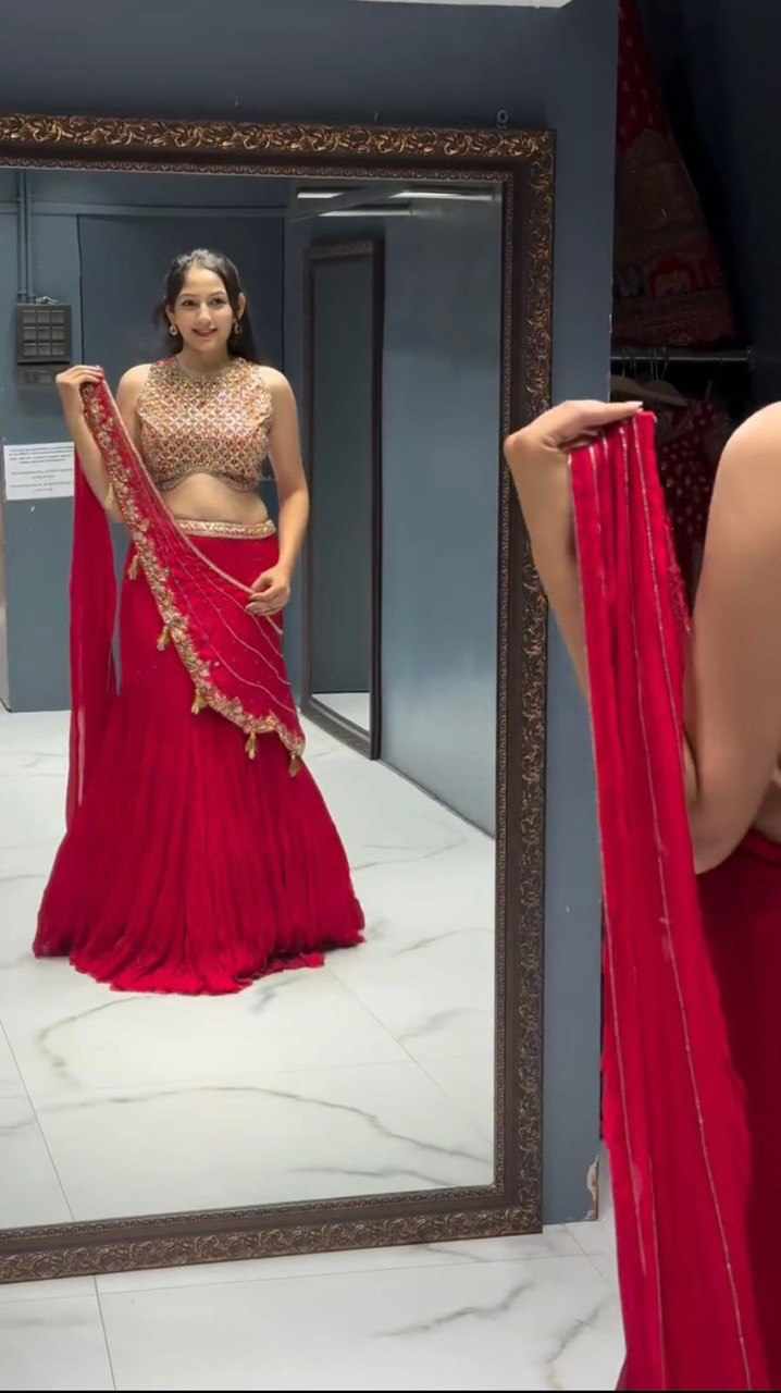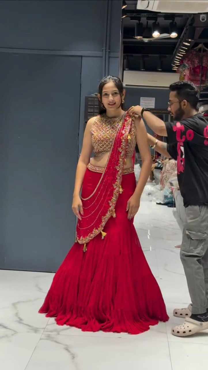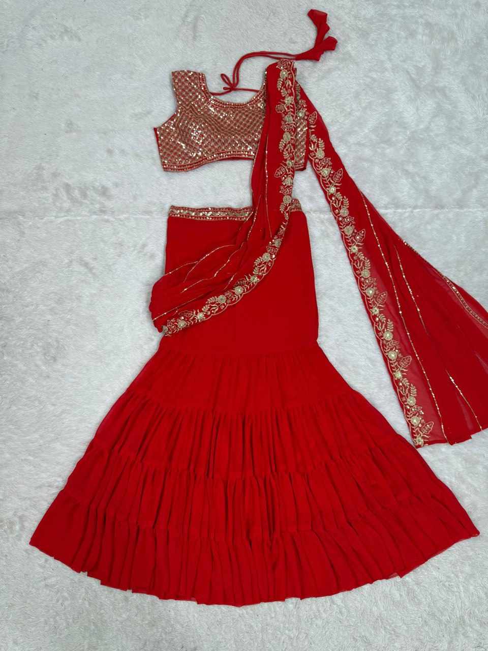 | Name : | QRC 360 Foux Gorgette thread with Sequnce Work Lehengha Saree |