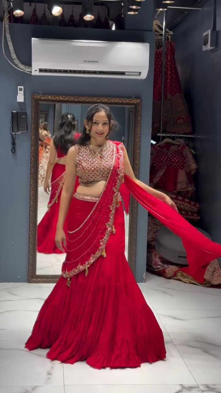 Lehengha Type: Ready to wear ruffle style up to 42 with elastic and side zip