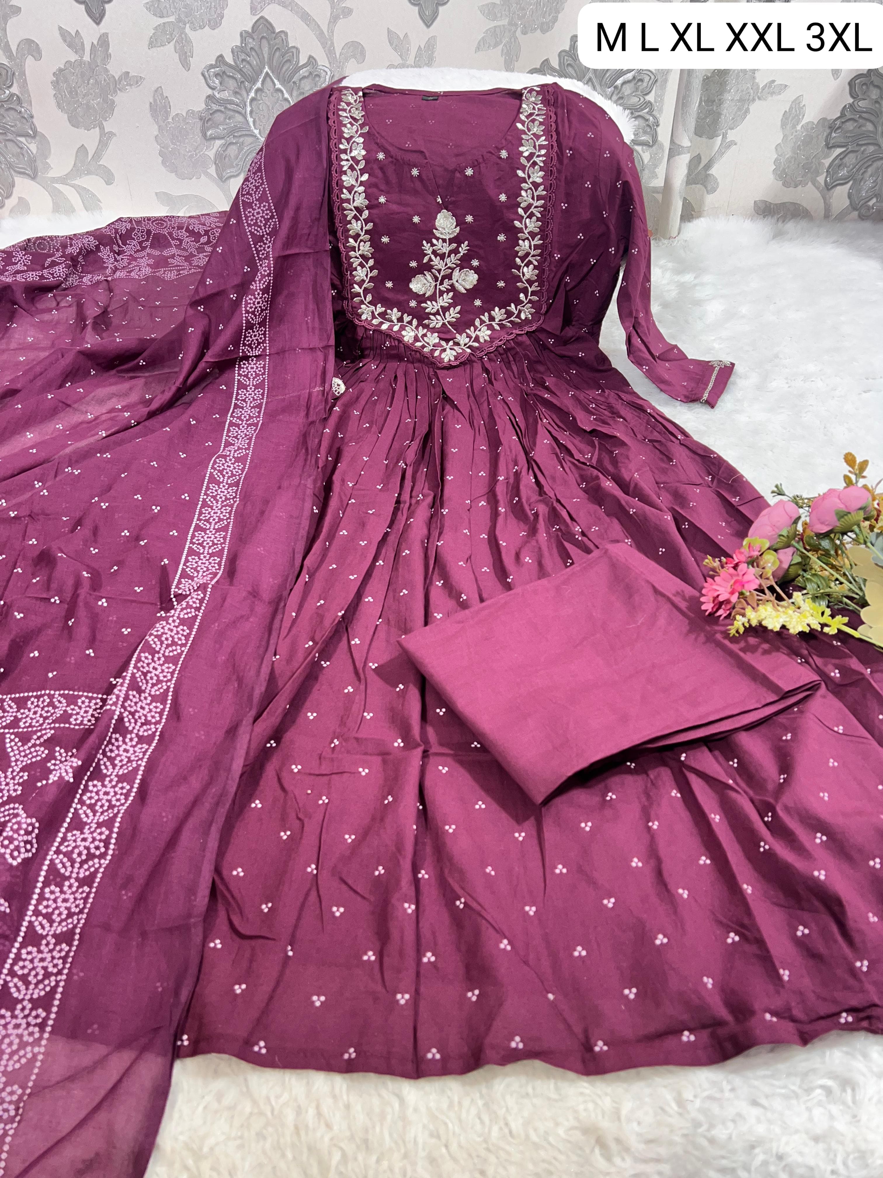 | Name : | SF 18JUN Anarkali kurta set with Cotton Pant & Malmal Dupatta |