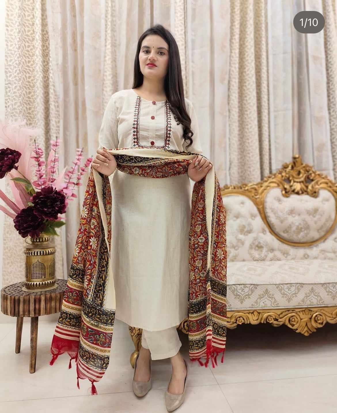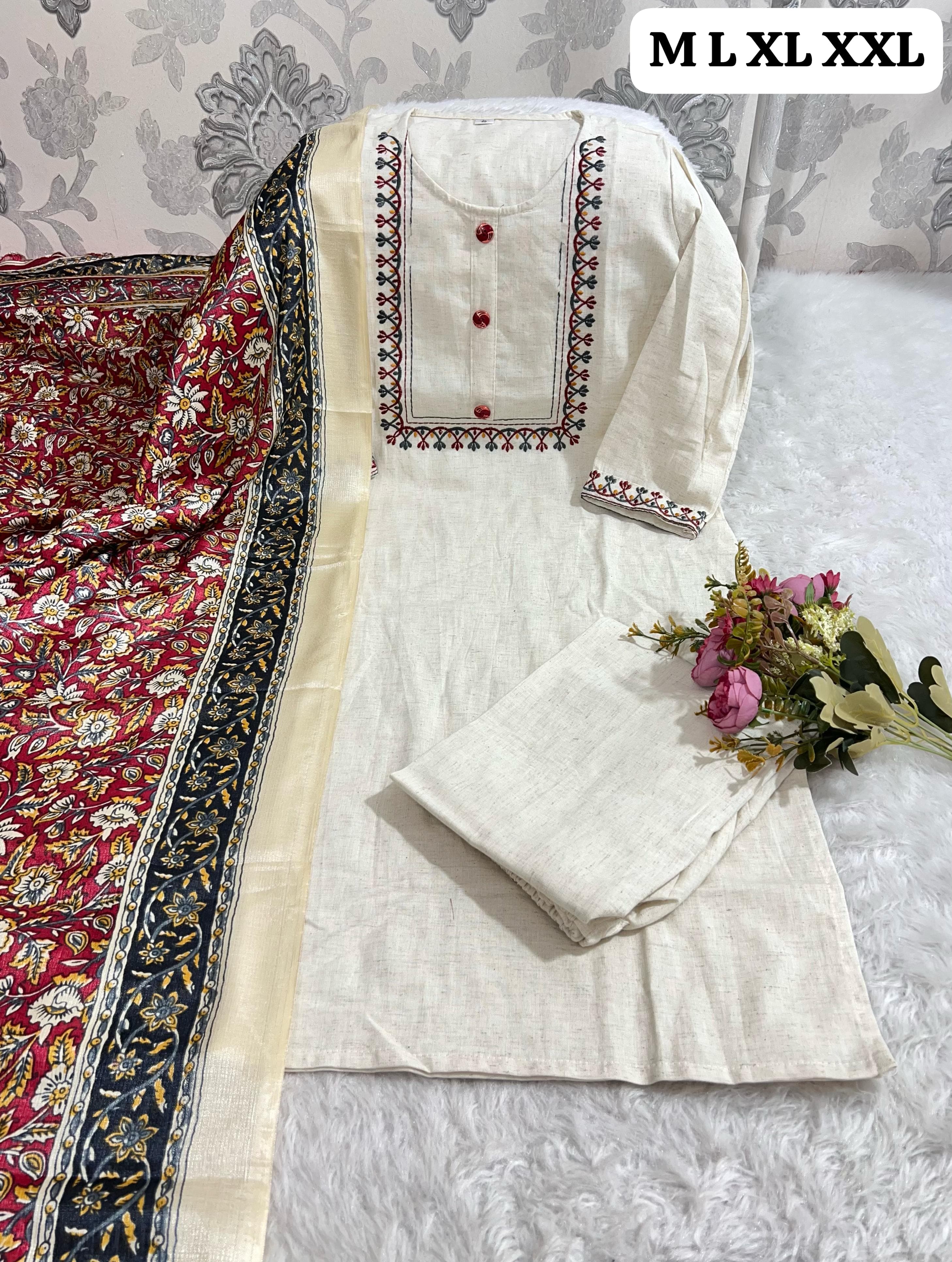 Reviews for SF 2JU Beautiful Cotton Kurti With Pant And Silk Chanderi Digital Print Dupatta 330